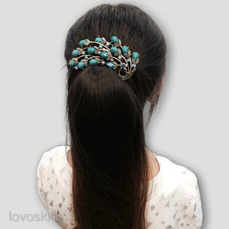 Gold Silver Vintage Wedding Crystal Comb Hairpin Prom Leaf Bridal