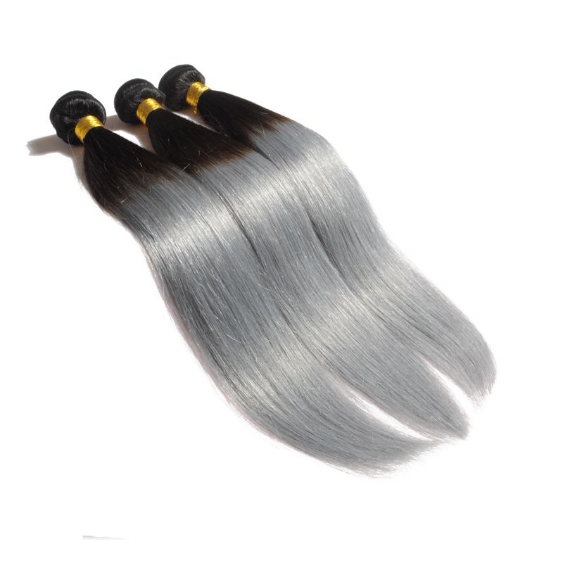 6a Virgin Indian Ombre Hair Weave Bundles 1b Grey Straight Human