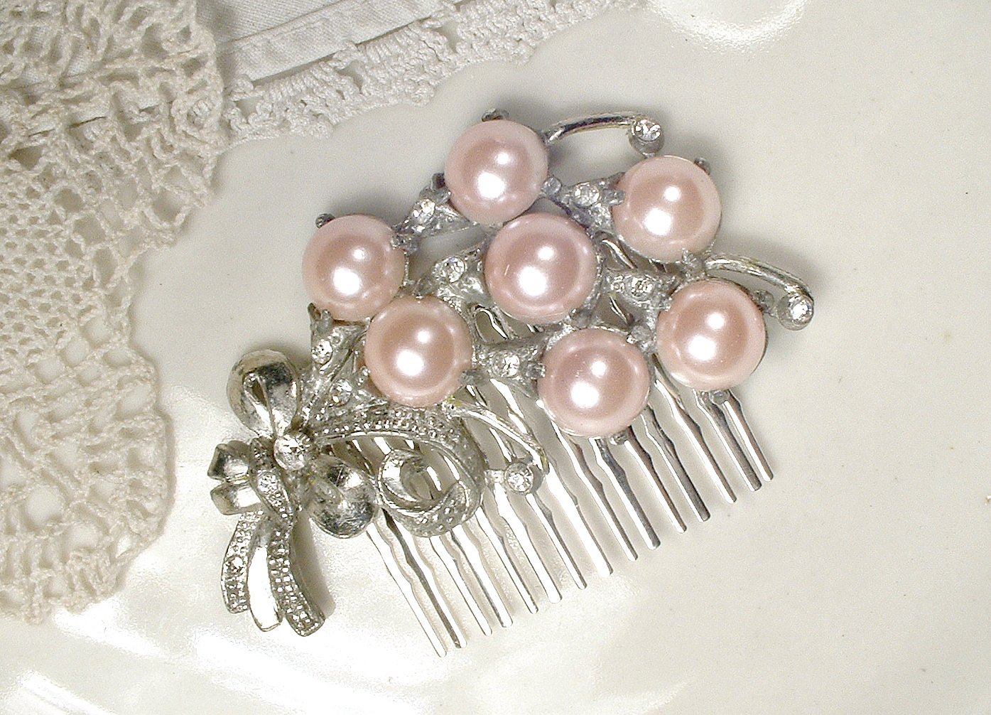 Amazon Com Dusty Blush Pink Bridal Hair Comb 1940s Antique Art