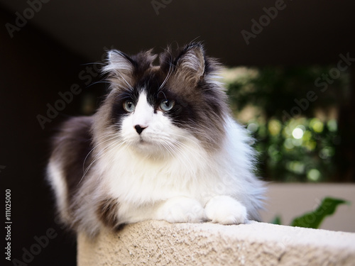 Portrait Of Large Fluffy Long Haired Brown White Ragdoll Cat With