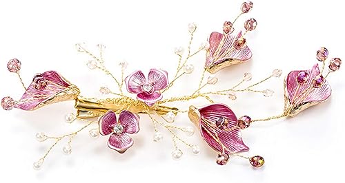 2019 Pink Cloth Flower Vine Pearls Crystal Barrettes Women Hair