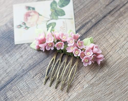 Topqueen Hp52 Wedding Comb With Flowers Pink Hair Accessories Pink