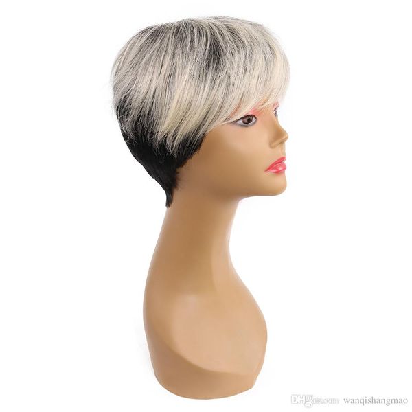 Synthetic Wig Hair Dyed Bobo Short Hair Black Gradient White Short