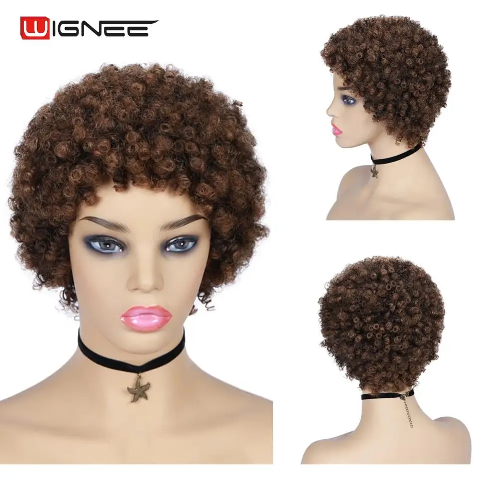 Wignee Short Afro Kinky Curly Human Hair Wigs For Black White