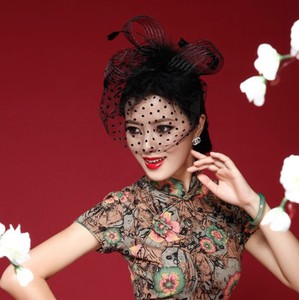 Black Bridal Fascinators Cover Face Birdcage Veils With Sinamay