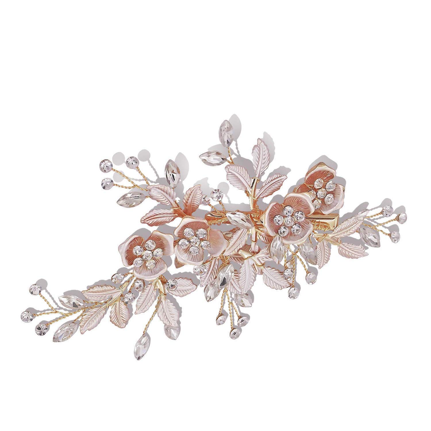Amazon Com Sweetv Light Rose Gold Wedding Clip Rhinestone Bridal