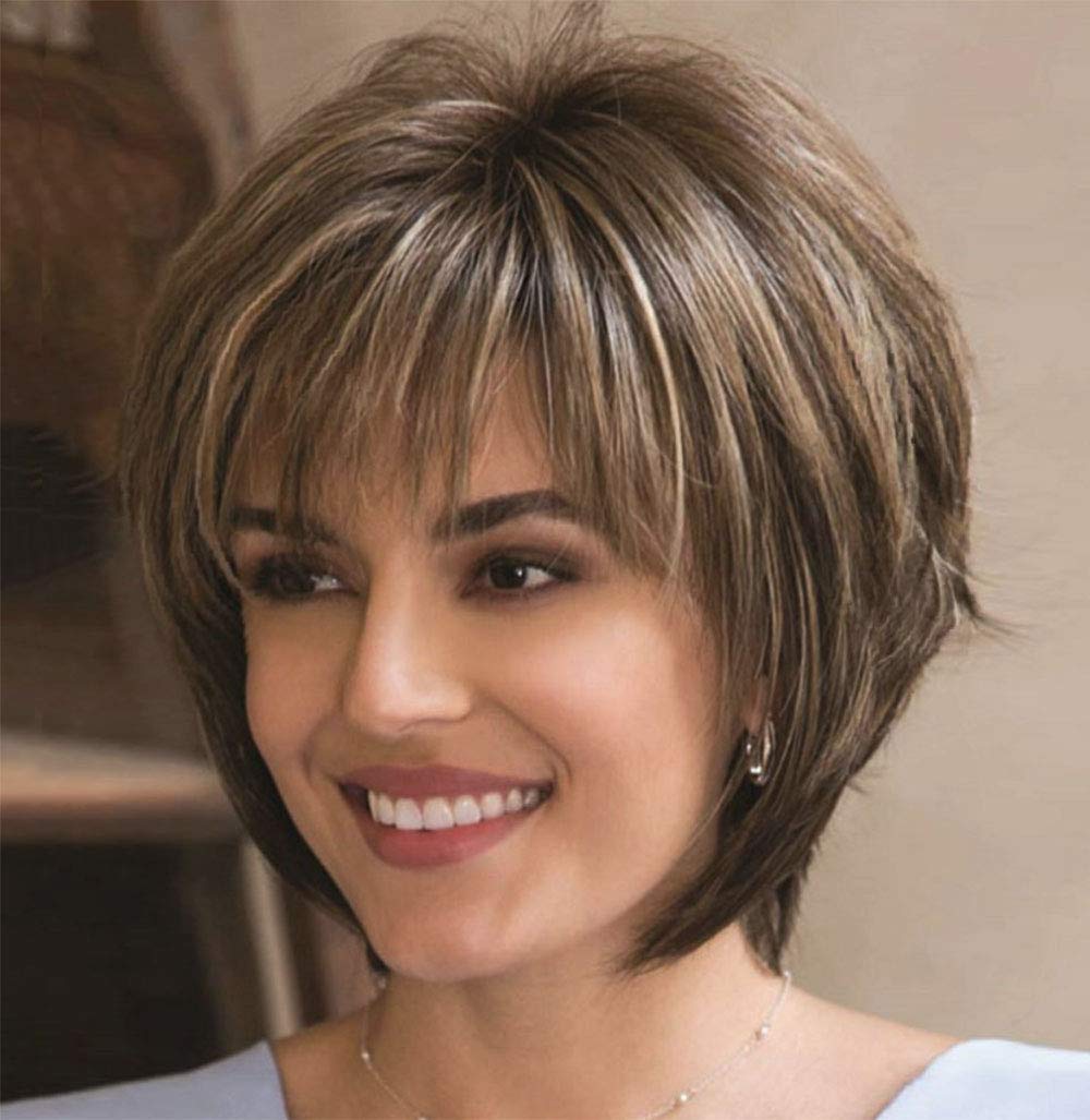 Fencca Short Curly Wigs For White Women Brown Bob Hair Wig Natural