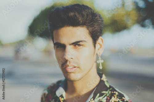 Young Guy With Bearded Handsome Sexy Serious Face Blue Eyes Brown