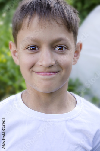 Teenage Boy With Short Dark Hair Isolated On White Stock Photo