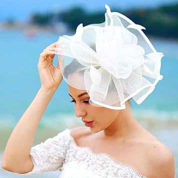 Amazon Com Yonquil Female White Hair Fascinators For Weddings