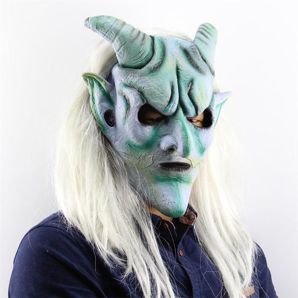 Halloween Super Scary Masks High Grade White Hair And Blue Eyes