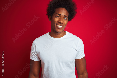 American Man With Afro Hair Wearing White T Shirt Standing Over