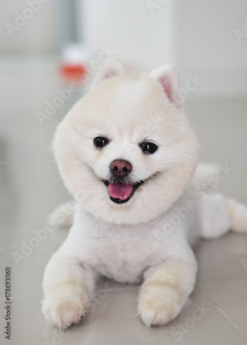 White Pomeranian Dog Breeds Cute Haircut Stock Photo Edit Now
